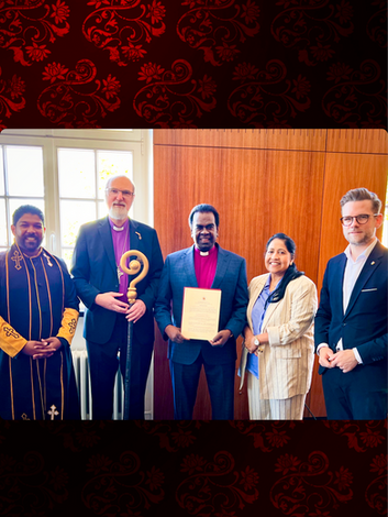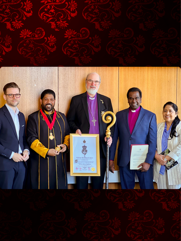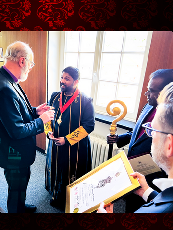 Zu dieser denkwürdigen Begegnung reisten hochrangige geistliche Würdenträger aus dem In- und Ausland an: Seine Eminenz, der hochverehrte Metropolitan Professor Dr. mult. Thomas Paul Schirrmacher (Bonn), sowie der Gründer der größten tamilischsprachigen Pfingstbewegung, Erzbischof Dr. G. A. Antony (Großbritannien), begleitet von seiner Gattin, der hochgeschätzten Rev. Dr. Mala Antony (beide ursprünglich aus Sri Lanka, jetzt in globalen Leitungsaufgaben in London). Gemeinsam mit dem Gründungsbischof der Blessing Church, Ehren-Erzbischof Antony Chandrathas, bildeten sie eine bedeutende Delegation.